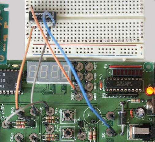 F !! Da die Ausgabe auf der 7-Segment LED muss außerhalb der ISR vom externen Interrupt 2 erfolgen, weil die I²C-Funktionen auch mit einer ISR arbeiten. !!