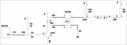 Abbildung 61 Aufbau einer Reed-Relais Schaltung mit dem Portpin P2.0
