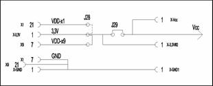 Bestücken sie zudem die Anschlussseite für das MCB900 bzw. EPM900. Der Sockel X1 ist für die EPM900-, der Sockel X9 für die MCB900-Verbindung. Mit Hilfe des Jumpers J28 (siehe Abbildung 4) wird die 3.3 V-Spannungsversorgung eingestellt.